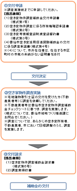 ※不動産業者等は雲仙市空き家物件調査補助金チェックシートに基づき、調査を実施します。(様式については、雲仙市地域づくり推進課にお問合せください。)