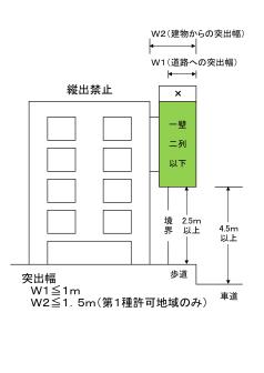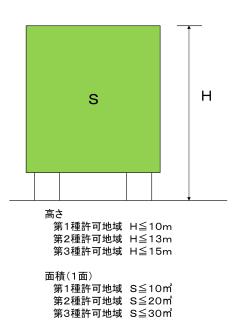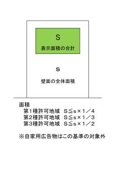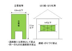 | (1)自家広告物等 禁止地域は合計5平方メートル以下、許可地域は合計10平方メートル以下まで |
