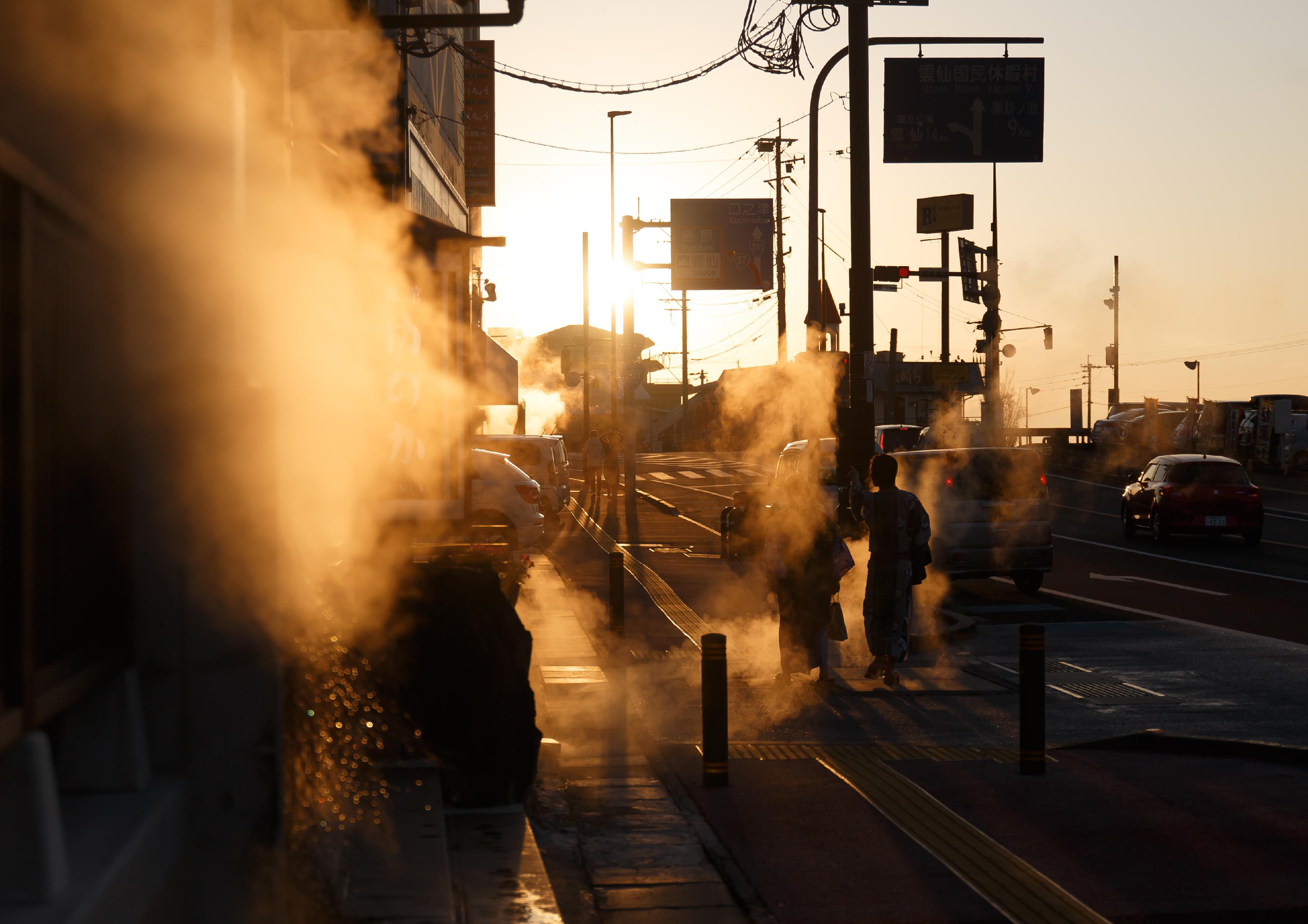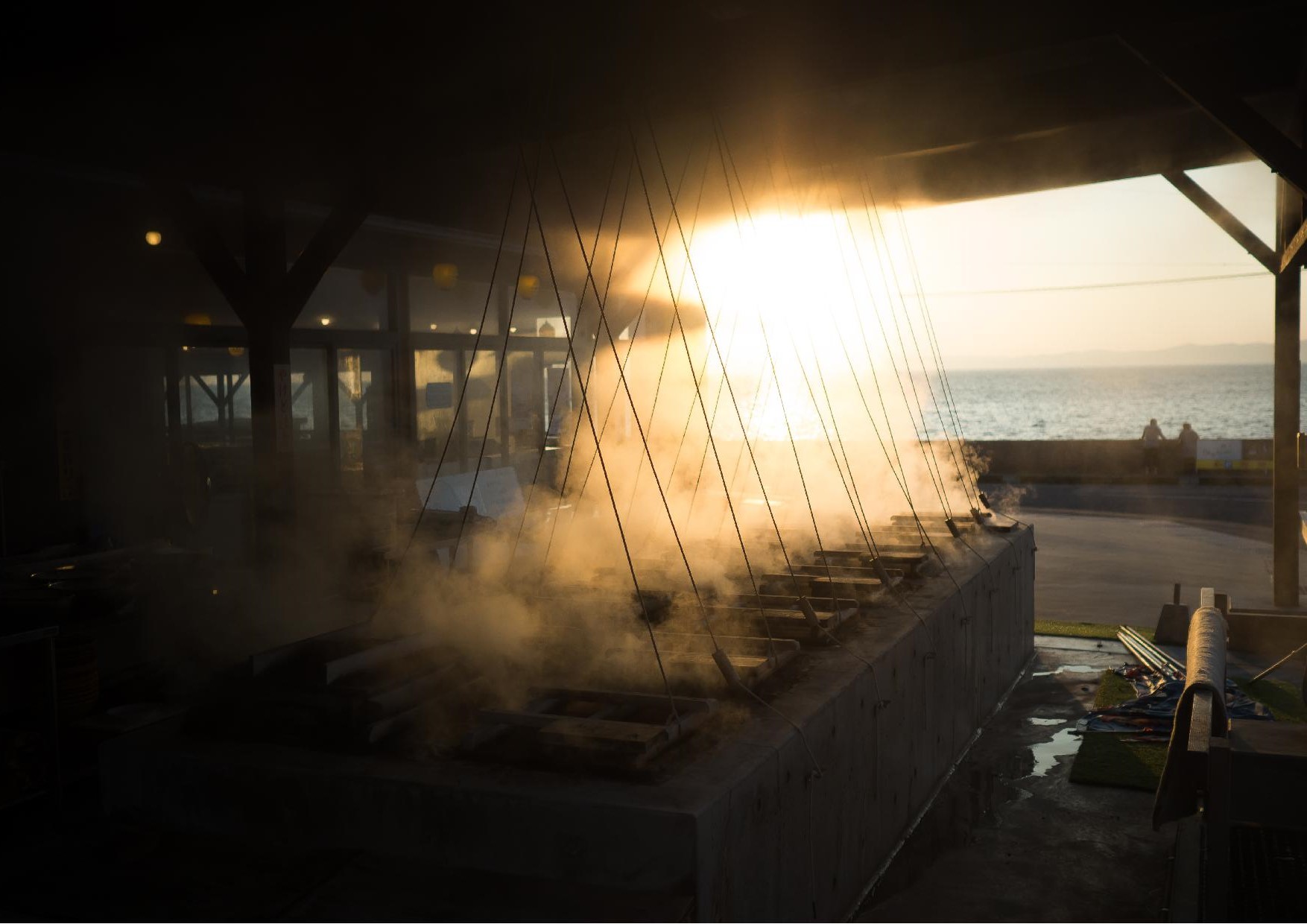 | | 2 | 夕日と蒸し釜 (JPEGファイル:238.8KB) | 蒸し釜や | 小浜町 | 7月中旬 |