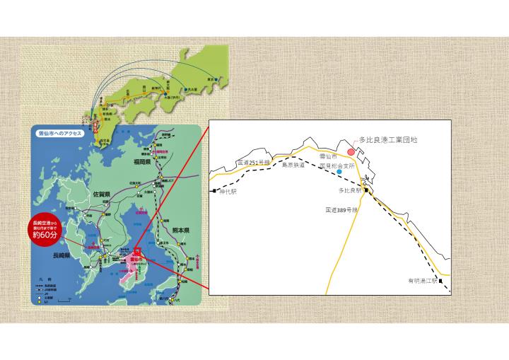 雲仙市が所有する土地を工場などの用地として分譲します。 詳しくは、企業誘致推進室(下記問い合わせ先)にお尋ねください。